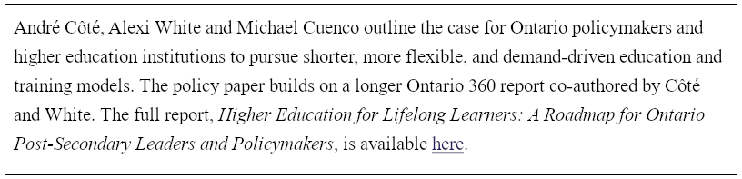 André Côté, Alexi White and Michael Cuenco explore the need for Ontario’s Higher Education system to move beyond traditional programs and models.