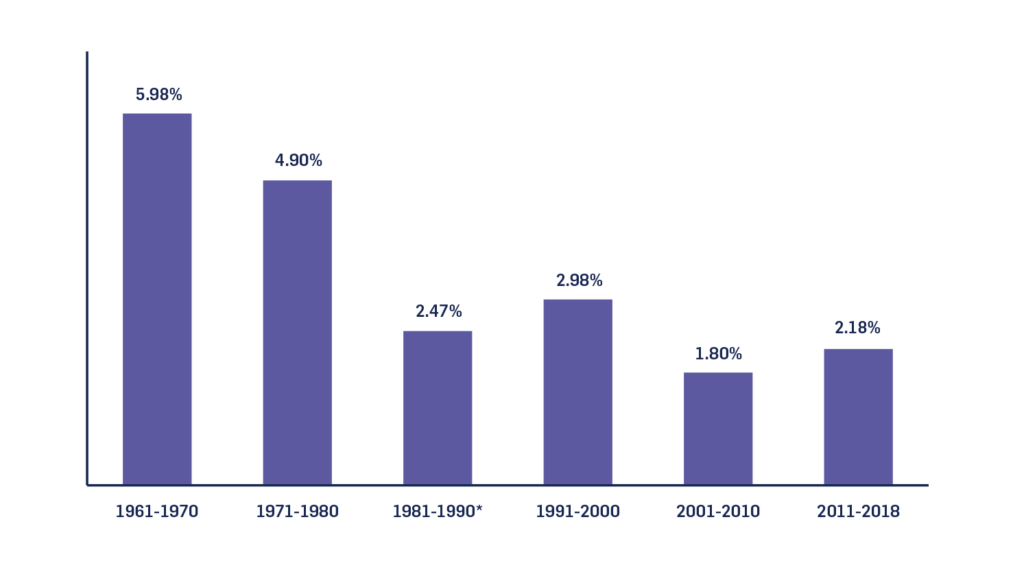 Figure 1: Average Real GDP Growth Per Decade ($2012), Canada
