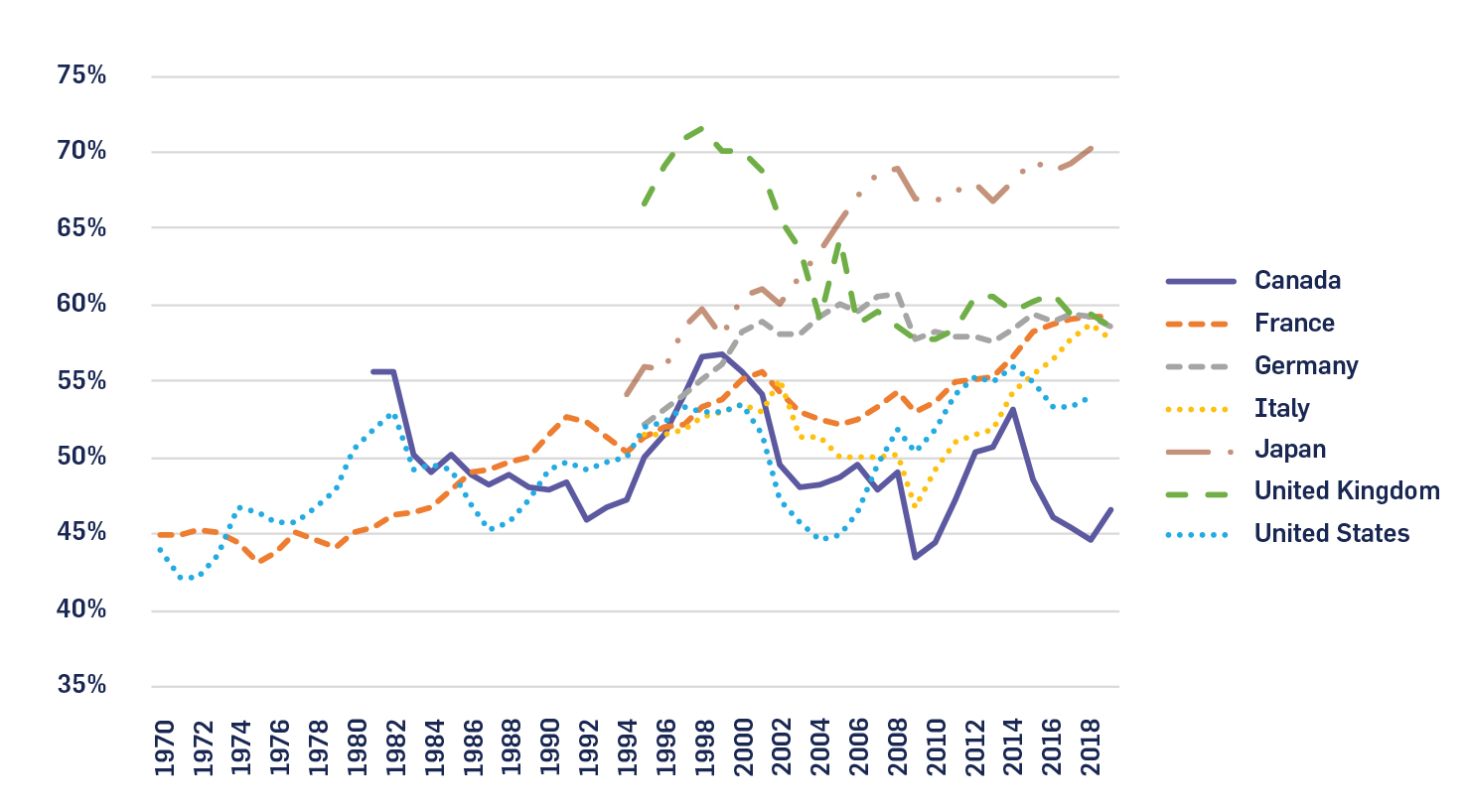 Figure 7: Corporate Investment as a Percentage of Gross Fixed Capital Formation, G-7 Countries, 1970 to 2018