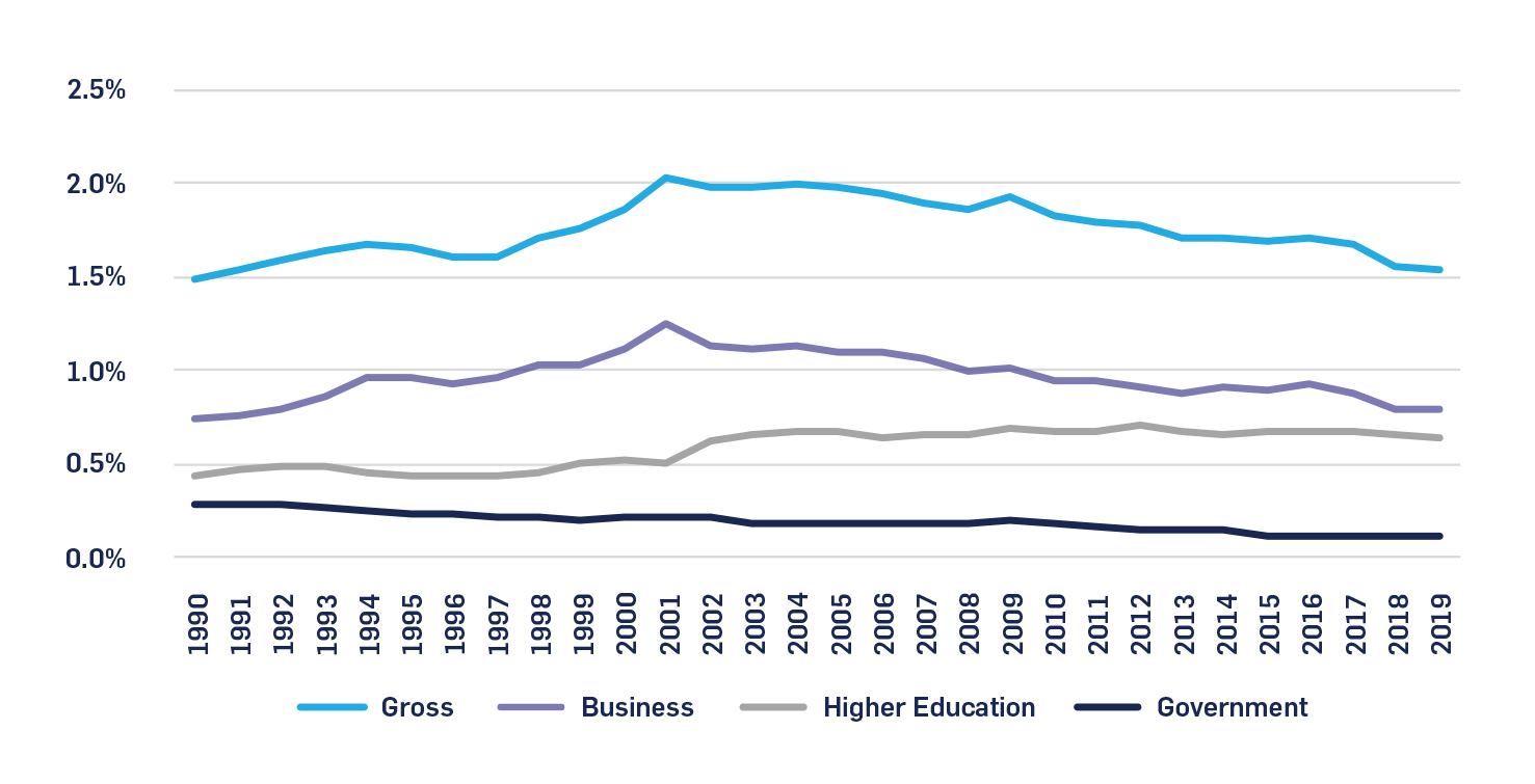 Figure 8: Gross Expenditures on Research and Development in Canada, 1990-2019