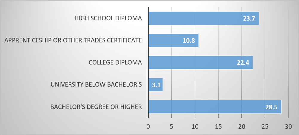Figure 1: Educational Attainment for Population aged 25 to 64, Canada, 2016