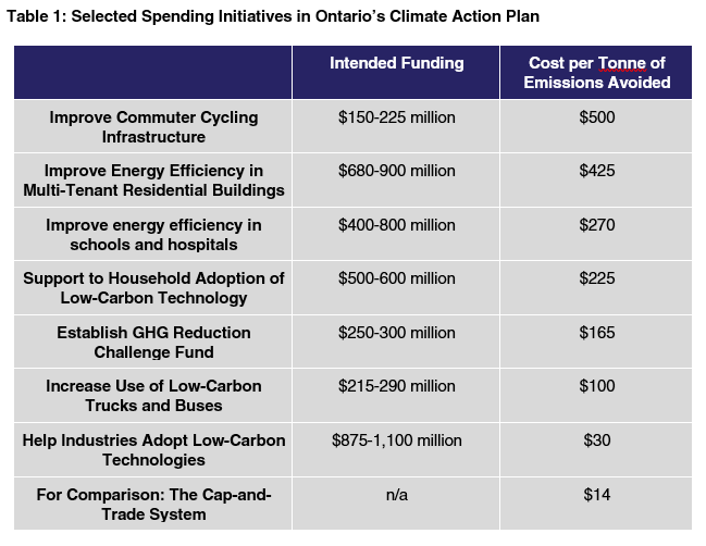 The main pillars of Ontario’s climate policy are (1) a cap-and-trade system, and (2) various environmental initiatives funded by its proceeds.