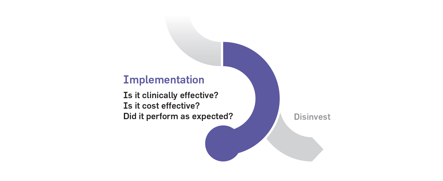 The implementation phase is the stage at which innovations are adopted into clinical practice using a “scale and spread” model, in which successful pilot studies are quickly expanded and replicated across the province as best practice. An innovation pathway oversight committee will assess how new technologies and processes are performing in a real-world setting and determine whether they should continue to be widely adopted or discontinued.