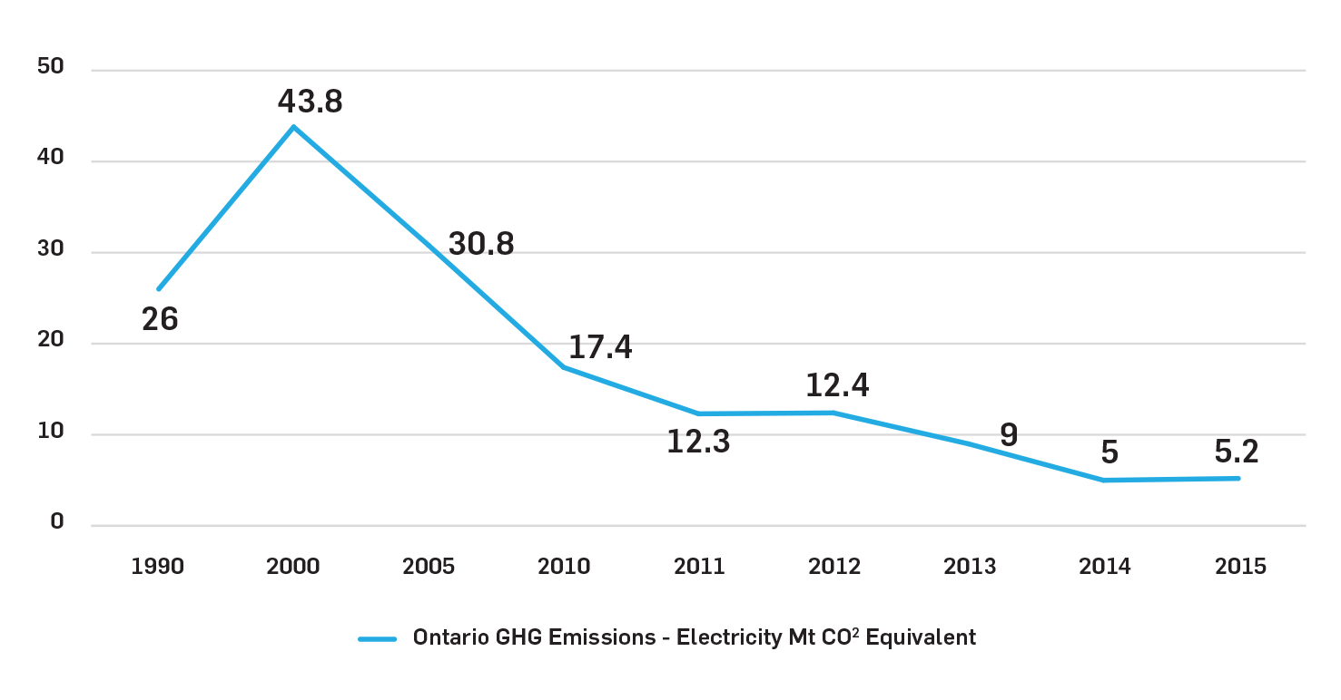 Figure 3: Ontario GHG Emissions – Electricity Mt CO2 Equivalent[9]